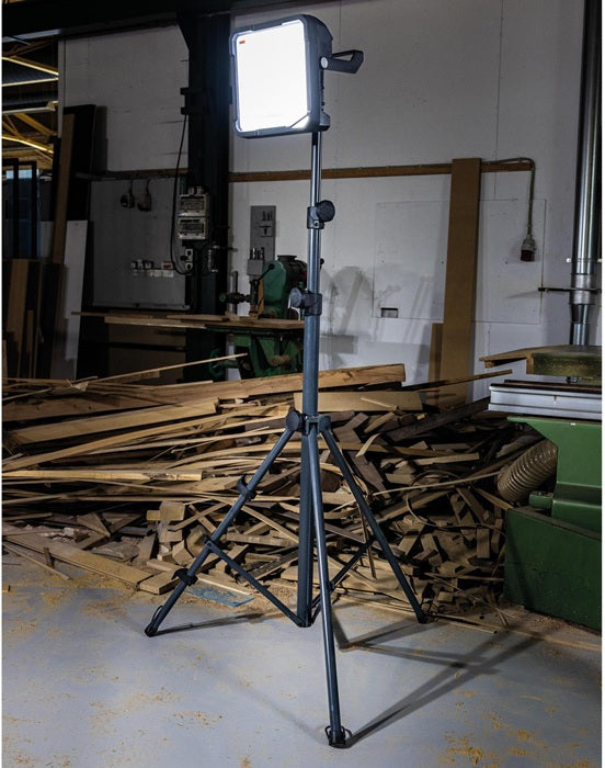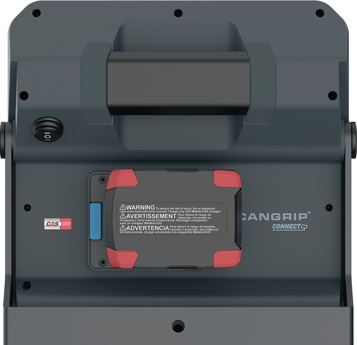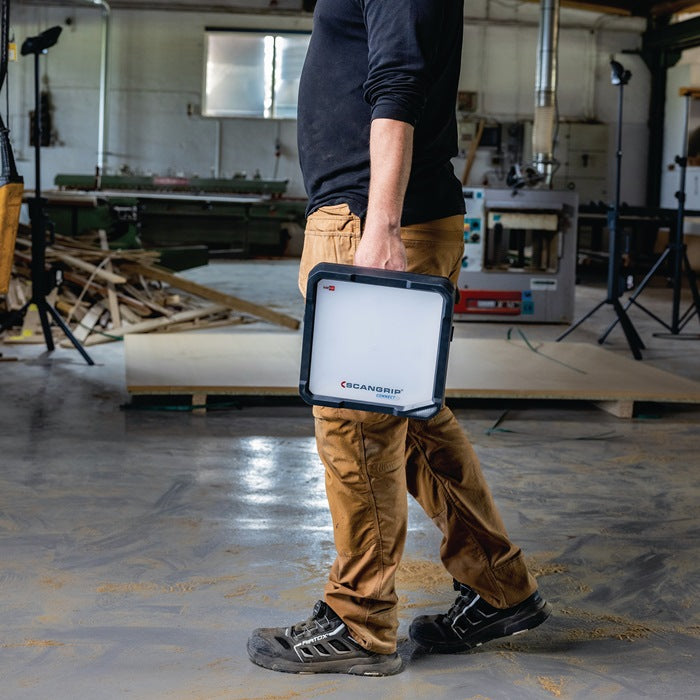 wasserdicht (IP54) · diffuses, blendfreies Arbeitslicht · einheitliche Lichtintensität und große Lichtstreuung · zwei Lichtstufen (50-100 %) · integrierter Handgriff und Stellfuß für Montage am SCANGRIP Stativ · robustes, schlagfestes Kunststoffgehäuse · die LEDs entwickeln keine Wärme und deshalb gibt es keine Brandgefahr