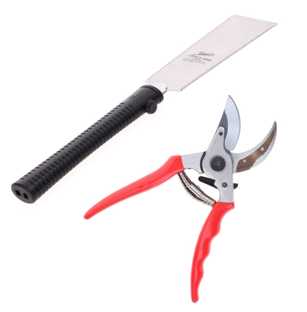 Shogun Gartenschere / Astschere / Rosenschere ( 355 ) + Shogun RYOBA Japansäge Universal Holz Zugsäge ( M-180R ) - Made in Japan