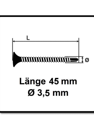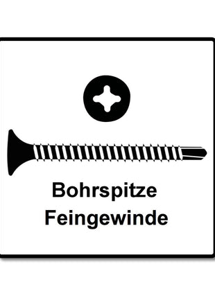 SPAX GIX-D Schnellbauschrauben 3,5x45 mm Bohrspitze Phosphatiert 1000 Stück ( 1991170350456 ) Vollgewinde , Trompetenkopf, Kreuzschlitz H2