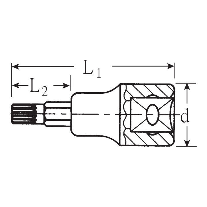 12,5 mm (1/2 ″)-Vierkantantrieb · für Schrauben mit Innenvielzahn-Profil (XZN®) · Chrom-Alloy-Stahl · verchromt · DIN 2324