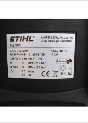 Stihl RE 109 Hochdruckreiniger 110 bar ( 4776 012 4511 )