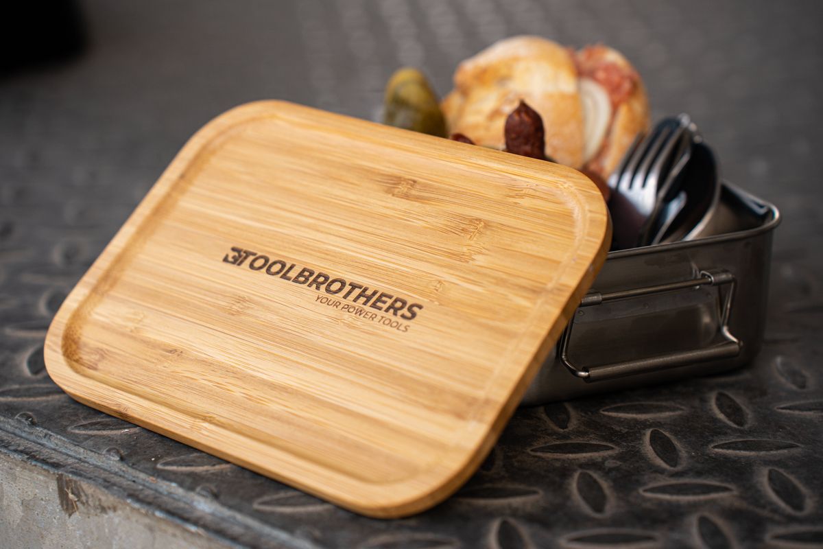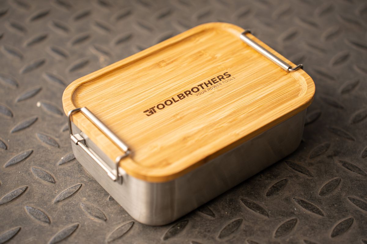 Toolbrothers Fan Edelstahl Brotdose mit 2 Etagen und Bambus Deckel 1340 ml