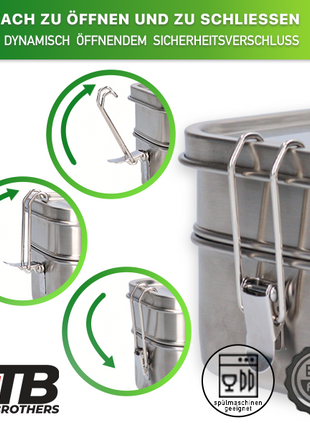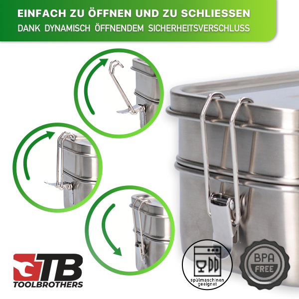 Toolbrothers Fan Edelstahl Brotdose mit Trennfächern und Edelstahldeckel 1200 ml