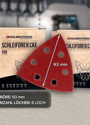 Toolbrothers FOX Schleifset Delta Schleifdreiecke 93 x 93 x 93 mm Klett 6 Loch je 10x P40 / P60 / P80 / P120 / P180 / P240 für Hartholz, Weichholz, Lack, Stein, Stahl, Aluminium, Furnier