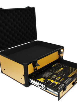 Toolbrothers TX Alu Werkzeug Koffer gelb für Akku Schlagschrauber und Schlagbohrschrauber + 70 tlg. Bit Bohrer Set + Würfelschaum Einlage