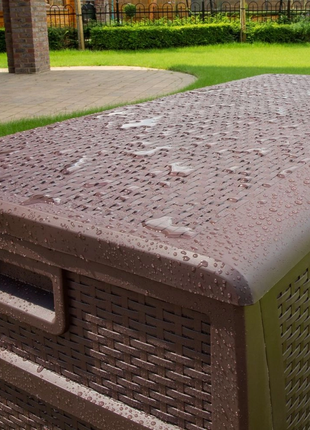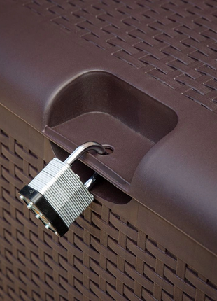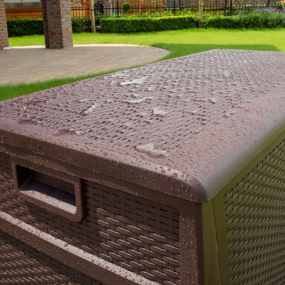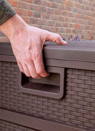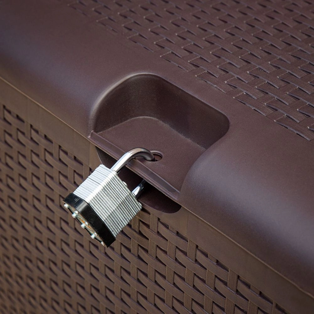 TOUGH MASTER 460L Outdoor-Aufbewahrungsbox Kunststoff, Rattan-Optik, Klappdeckel mit Riegel, wasser- und wetterfest, 120 x 61 x 63 cm, braun ( TM-SBR46 )