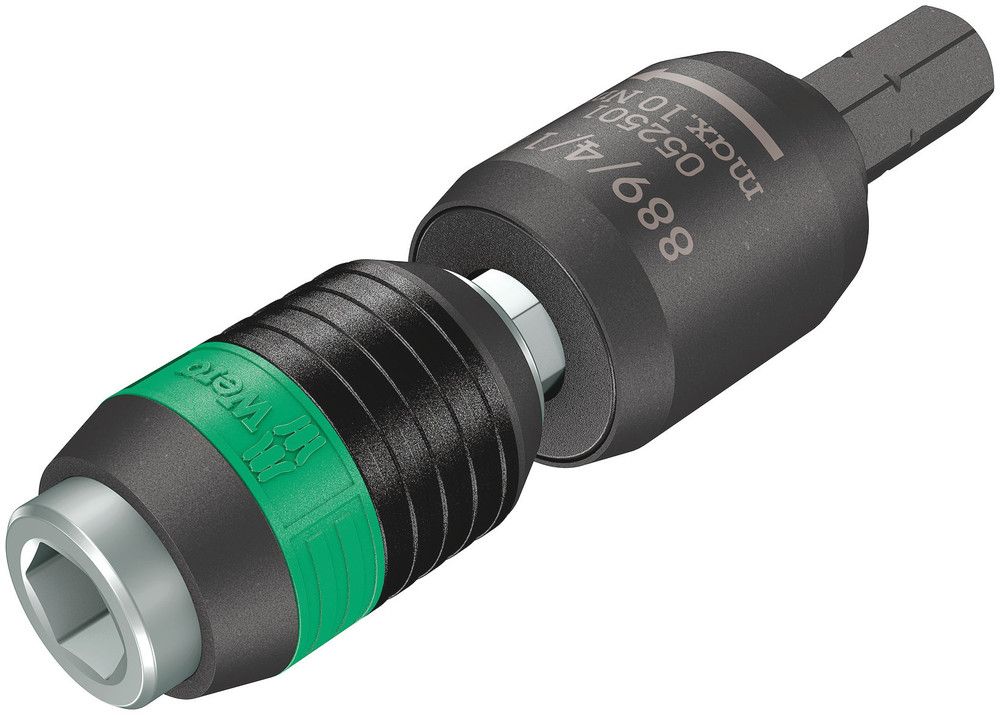 für Drehmomentschraubendreher mit Pistolengriff · mit Magnet und Freilauffunktion für schnelle Rückholbewegung ohne Absetzen beim Rechtsanzug · speziell geeignet für den Einsatz mit Wera Drehmomentschraubern mit Pistolengriff · Rapidaptor Technologie · Abtrieb 6,3 mm (1/4")-Sechskant für Bits-/Schrauberklingen C 6,3 + E 6,3 · Einhandbedienung