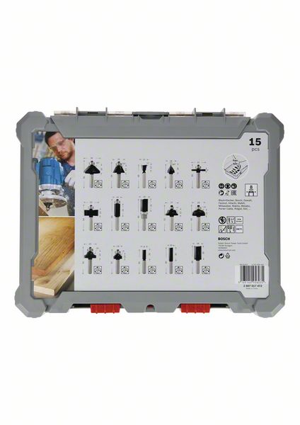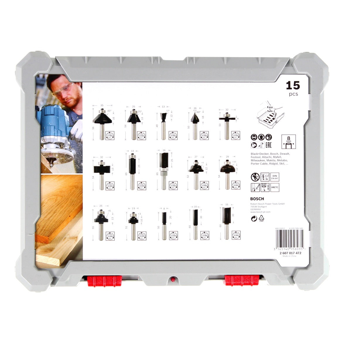 Bosch Mixed Fräser Set 8 mm 15 tlg. + Koffer ( 2607017472 ) für Oberfräsen mit Rundschaft
