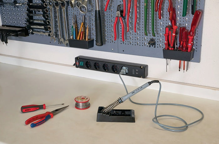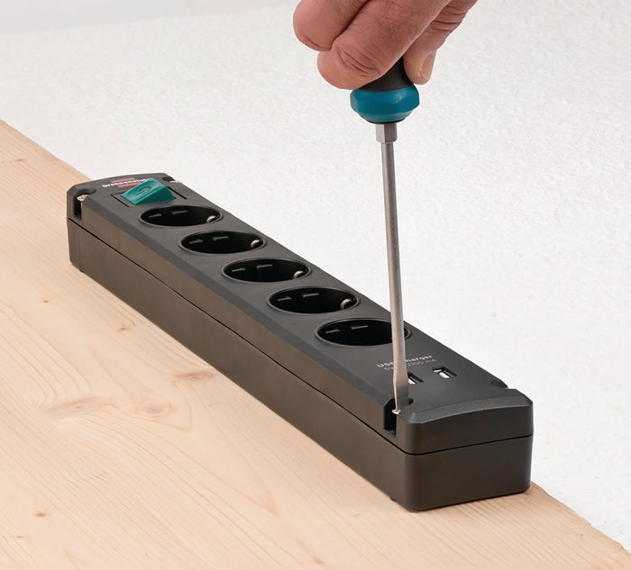 Produktbeschreibung:Mehrfach-Steckdosenleiste · erhöhter Berührungsschutz · formschönes Design · Steckdosen im Winkel von 90° angeordnet, bestens geeignet zum Anschluss von Winkelsteckern · die Abstände ermöglichen den Betrieb von Netzgeräten · Sicherheitsschalter beleuchtet · zweipolig ein-/ausschaltbar · Mehrfachstecker mit praktischen Schraublöchern zur Wandmontage 8000 594 293: zwei integrierte USB-Anschlüsse mit USB-Ladefunktion, Gesamtladestrom max. 2100mA