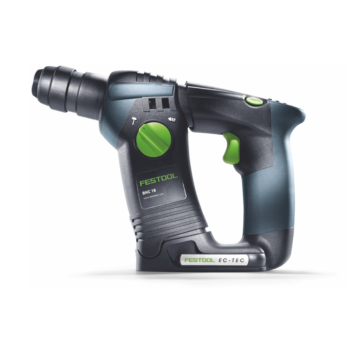 Der Festool Akku-Bohrhammer BHC 18 überzeugt mit dem Bürstenlosen EC-TEC Motor mit integriertem Motormanagement für lange Lebensdauer und höchste Leistung. Weiterhin verfügt der BHC 18 über die hochwertige Lithium-lonen Akku Technologie, welche für höchste Ausdauerleistung beim Arbeiten sorgt. Die Vibrationsdämpfung ermöglicht bei ermüdungsarmen Tätigkeiten in jeder Arbeitssituation ein angenehmes und komfortables Arbeiten. Dank der Kombination aus EC-TEC Motor und C-Bauform verfügt der Festool Akku-Bohrhammer über ein unschlagbares Gewichts-Leistungsverhältnis. Die BHC 18 eignet sich hervorragend zum Bohren von Dübellöchern bis 18 mm in Beton, Stein und Mauerwerk. Mit nur 2,6 kg und ausgezeichneter Balance ideal geeignet für den Dauereinsatz bei Innenausbau, der Montage, bis hin zur Befestigung von Wärmedämmverbundsystemen (WDVS). Bohren und Schrauben ohne Hammerschlag und Dosensenken bis 68 mm Durchschnitt in Kalksandstein und Mauerwerk ist möglich.