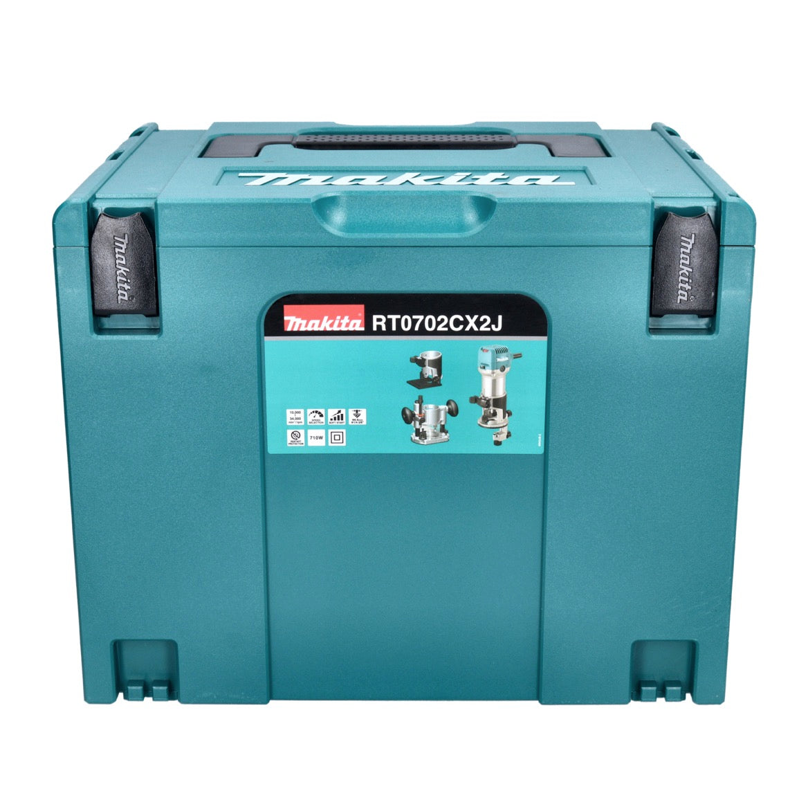 Makita RT 0702 CX2J Multifunktionsfräse 710 W 6 / 8 mm + Oberfräsenmodul + Kantenfräsenmodul + Winkelfräsenmodul + Makpac