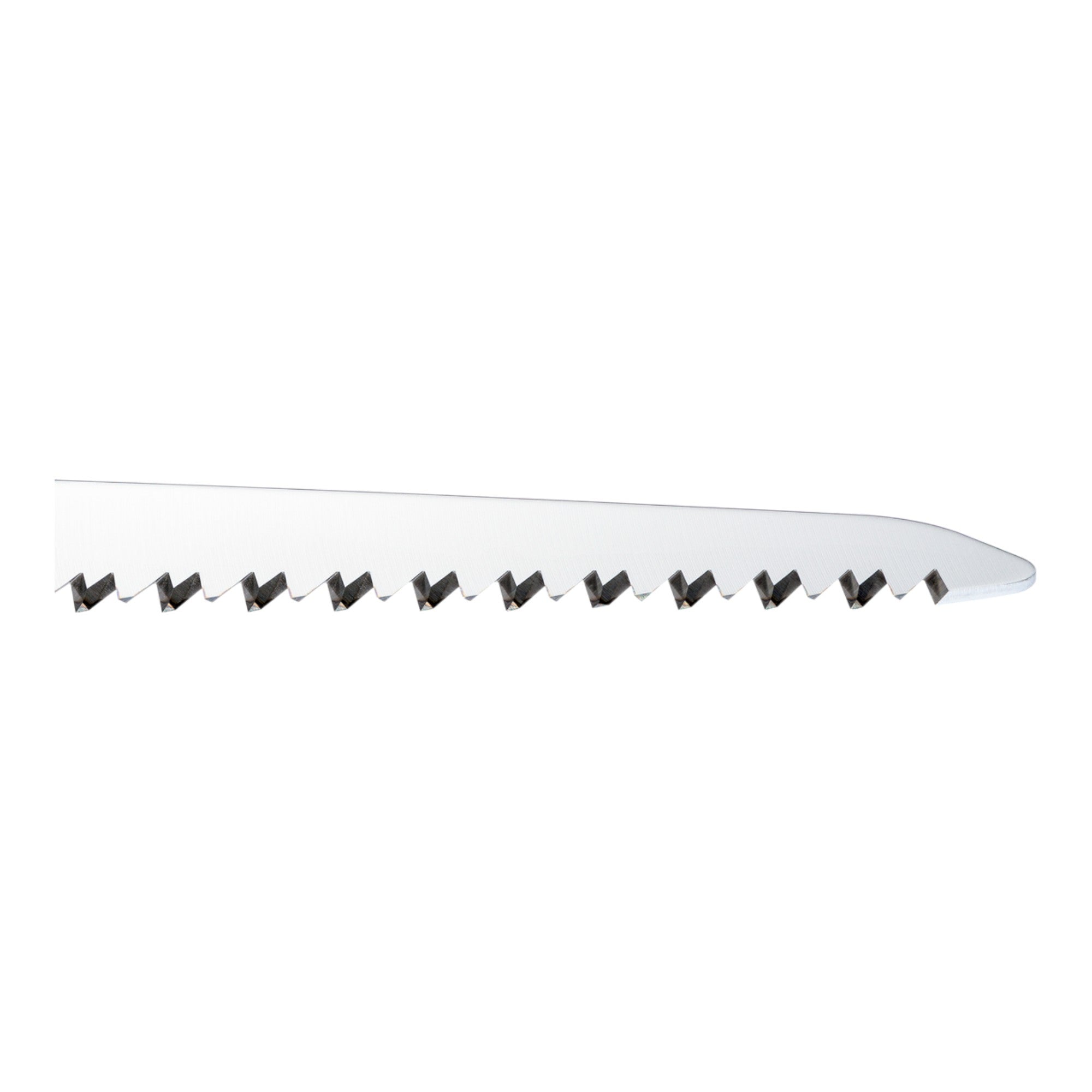 Die Oregon Baumpflege-Handsäge 33 cm (13") ist ein zuverlässiges Werkzeug für präzise und saubere Schnitte bei der Garten- und Baumpflege. Ihr hochwertiges, gebogenes Sägeblatt aus kohlenstoffreichem japanischem Stahl ist mit dreischneidigen, impulsgehärteten Zähnen ausgestattet, die für besonders glatte und mühelose Schnitte sorgen. Mit 6,5 Zähnen pro Zoll überzeugt die Säge durch Schärfe und Langlebigkeit – ideal für den regelmäßigen Einsatz. Das austauschbare, verchromte Messer erhöht die Lebensdauer des Werkzeugs und ermöglicht jederzeit beste Schnittleistungen. Für maximalen Komfort sorgt das ergonomische Griffdesign in Kombination mit einem strapazierfähigen Polypropylen-Griff, der auch bei längeren Arbeiten sicher in der Hand liegt. Die praktische Scheide mit Einrastmechanismus gewährleistet eine sichere Aufbewahrung und kann flexibel mit Gürtelschlaufe oder Gurtband befestigt werden. Damit ist die Handsäge nicht nur effizient, sondern auch sicher und komfortabel in der Handhabung. Mit der Oregon 600136 Baumpflege-Handsäge bist Du bestens ausgerüstet für anspruchsvolle Schneidarbeiten im Garten oder bei der professionellen Baumpflege.
