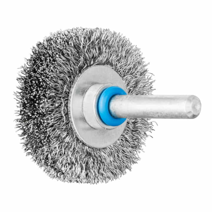 zum Reinigen, Entrosten, Glätten, Putzen von Schweißnähten, leichten Entgraten und Entfernen von Korrosion und Lacken · sehr gute Korrosionsbeständigkeit bei optimaler Standzeit · INOX-Besatz blau für den Einsatz auf allen Edelstählen (INOX), wie z. B. V4A. Edelstahldraht (INOX) hält Temperaturen bis 450 °C stand · Schaft-Ø 6 mm