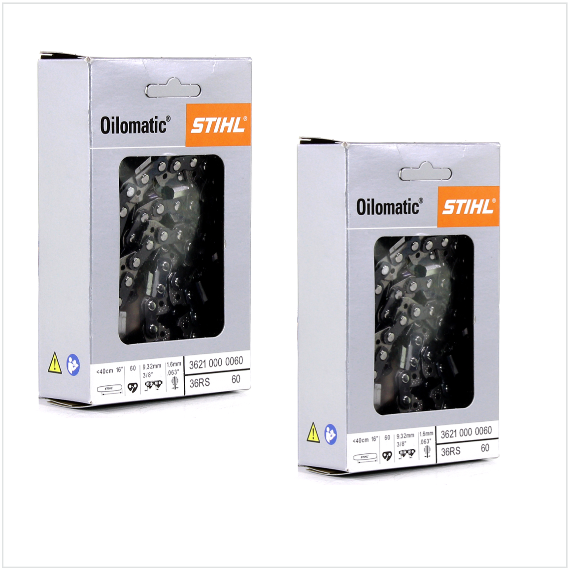- 2x STIHL Hochleistungs Sägekette Rapid Super (RS) Vollmeißel 3/8" 1,6mm 40cm ( 3621 000 0060 )