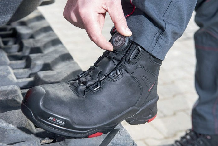 nach DIN EN ISO 20345 · S3 SRC HRO · vollnarbiges, robustes, atmungsaktives LWG-Rindleder · BOA® Verschlusssystem für einfaches Öffnen und Schließen bei optimaler Justierung der Passform · Heel-Safety-System · Baak® Stahl-Flexkappe · integriertes H-Kopplungs-Element zum fußgerechten Abknicken · durchtritthemmende nichtmetallische flexible Brandzwischensohle · Baak® go&relax System · Baak® ESD Softstep+ Einlegesohle · kurzzeitig bis 300°C belastbar · rutschhemmend, resistent gegen viele Säuren und Laugen, schnittsicher · nach DGUV 112-191 · Weite 11 auf Anfrage auch ab Gr. 38 und bis Gr. 48 lieferbar