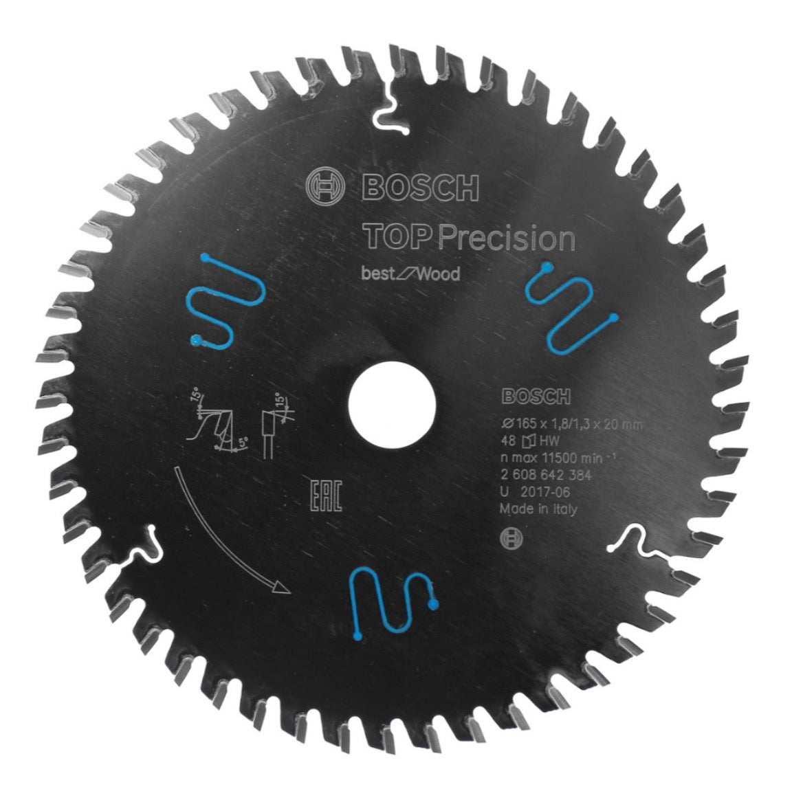 - 1x Bosch Pro Kreissägeblatt Top Precision Best for Wood 165 x 20 x 1,8 mm, 48 Zähne ( 2608642384 )