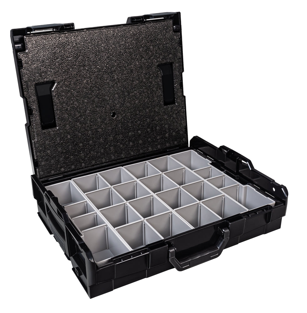 - 2 x Insetbox K3 in der Farbe grau, jeweils mit 3 Trennwänden K3 und 4 Trennwänden I3