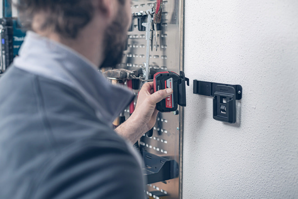 Der ProClick Battery Adapter Set 1.0 ist die perfekte Lösung, um einen Ersatzakku sicher am Gürtel zu tragen. Dieser Adapter ist speziell für den ProClick Holder entwickelt und ermöglicht eine zuverlässige Verbindung zwischen dem Akku und dem Holder. Er ist kompatibel mit dem AMPShare Akku-System powered by Bosch Professional sowie allen handelsüblichen CAS Akkus und dem Hilti B22 Akku. Mit dem ProClick Battery Adapter 1.0 erhalten Sie ein praktisches 2er Set, um stets einen Ersatzakku griffbereit zu haben.
