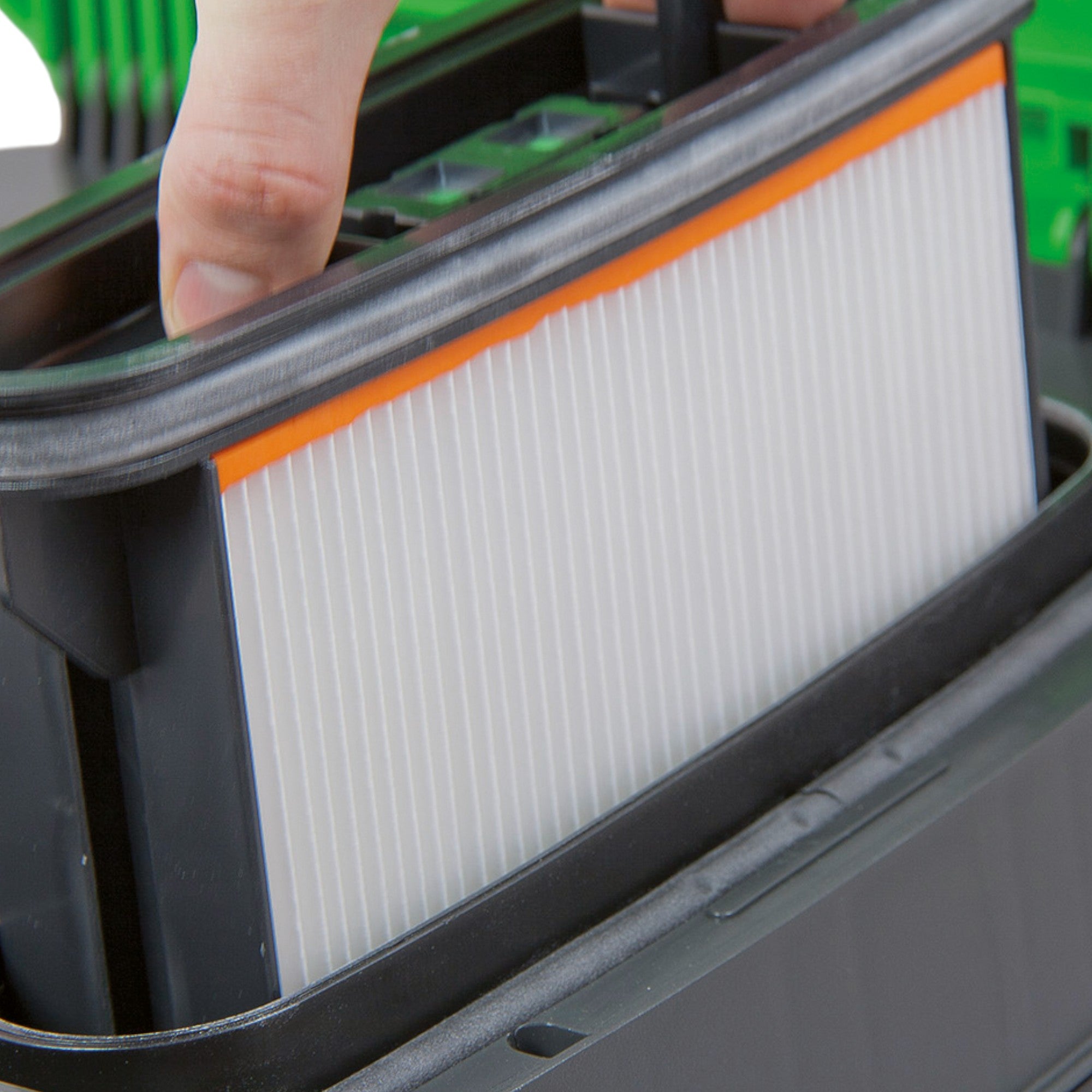 Der Eibenstock DSS 35 M iP Nass- und Trockenstaubsauger ist eine robuste und leistungsstarke Lösung für das Absaugen von Arbeitsstäuben und Arbeitsschlämmen in verschiedenen Anwendungen. Besonders herausragend ist die automatische, elektromagnetische Impuls-Filterabreinigung, die die Filter während des Saugbetriebs kontinuierlich reinigt, ohne den Saugstrom zu unterbrechen. Diese Technologie erhöht die Standzeit der Filter und reduziert gleichzeitig den Wartungsaufwand, was Zeit und Kosten spart. Der Staubsauger ist mit einer Druckdifferenzüberwachung ausgestattet, die für eine konstante Saugleistung sorgt, selbst während der Filterabreinigung. Mit einer BGIA-Staubkategorie M eignet sich der DSS 35 M iP auch für den Umgang mit Gipsstaub und anderen gesundheitsschädlichen Stäuben. Der konstant hohe Luftstrom bleibt auch während der Filterabreinigung stabil, was für eine gleichbleibende Effizienz sorgt. Der Staubsauger ist mit einem elektronisch geregelten Sanftanlauf ausgestattet, der die Maschine sicher startet und stoppt, während eine Einschaltverzögerung und ein Nachlauf die Nutzung weiter optimieren. Eine Gerätesteckdose mit Einschaltautomatik ermöglicht es, Elektrowerkzeuge direkt anzuschließen, sodass der Staubsauger automatisch startet, wenn das Werkzeug in Betrieb genommen wird. Die Volumenstromanzeige überwacht die Saugleistung und informiert den Nutzer über den aktuellen Status, während die Volumenstromüberwachung auf unterschiedliche Schlauchdurchmesser einstellbar ist, um die Leistung an verschiedene Anforderungen anzupassen. Der Diffusor sorgt dafür, dass die Abluft kontrolliert abgeführt wird, ohne Staub aufzuwirbeln. Zudem erkennt der Staubsauger Wasser und schaltet sich bei Kontakt automatisch ab, um Schäden zu vermeiden. Mit zwei langlebigen Polyesterfilterkassetten und einer Filteroberfläche von 8.600 cm² bietet der DSS 35 M iP eine konstant hohe Saugleistung, die auch bei längeren Einsätzen aufrechterhalten wird. Das neue Design mit stabilen Verschlüssen und der Spezial-Kunststoffbehälter garantieren eine hohe Standsicherheit und eine einfache Entleerung des Geräts. Ein spezieller Plastikbeutel sorgt für eine staubarme Entsorgung, während die Schlauchfixierung mit Bajonettverschluss für eine sichere Verbindung sorgt. Der Staubsauger ist zudem mit einem Tragegriff und einer Schlauchaufwicklung ausgestattet, um den Transport und die Aufbewahrung zu erleichtern.