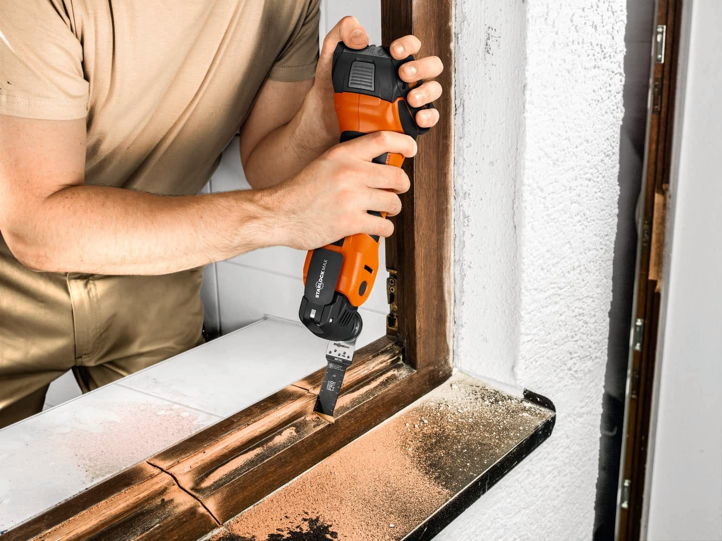 ohne Akku und Ladegerät, je 2 E-Cut Standard-Sägeblätter curved (35+65 mm), je 1 E-Cut Precision Sägeblatt (35+65 mm), je 1 E-Cut Long-Life Sägeblatt (10+32+42 mm), 1 E-Cut Carbide Pro Sägeblatt (32 mm), 1 HM Segmentsägeblatt, 1 Spachtel, je 10 Schleifblätter, gelocht (K 60, 80, 120, 180), 2 E-Cut Long-Life Sägeblätter (35 mm), 1 Sägeblatt segmentiert (Ø 85 mm), 1 HM Raspel (Dreieckform), 1 Schneidmesser Pilzform, 1 Schleifplatte gelocht, Absaugvorrichtung, L-BOXX 136