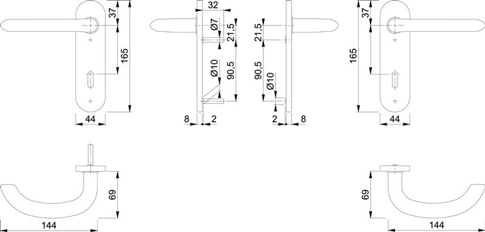 Innentür-Kurzschild-Garnitur geprüft nach DIN EN 1906 (Gebrauchs-Kategorie Klasse 3) · Türgriffe mit Schnellstift-Verbindung (mit 8 mm Vollstift) für Türstärke 37 - 42 mm und Rückholfeder · verdeckte Verschraubung · Anschlagrichtung DIN links / rechts Entfernung 72 mm
