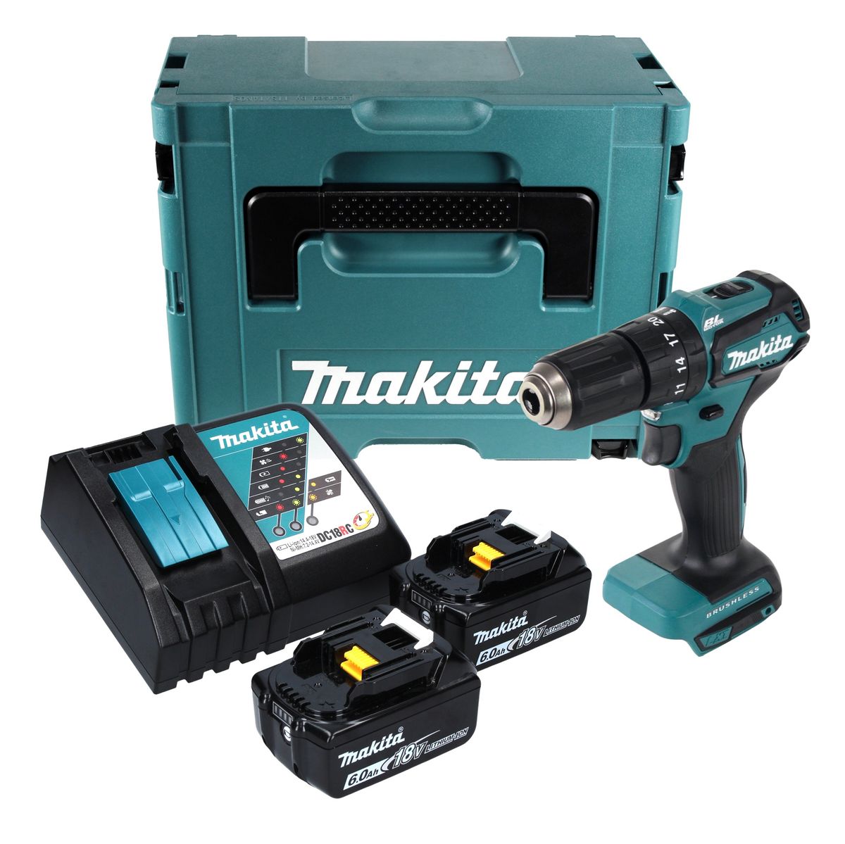 Makita DHP 483 RGJ Akku Schlagbohrschrauber 18 V 40 Nm + 2x Akku 6,0 Ah + Ladegerät + Makpac