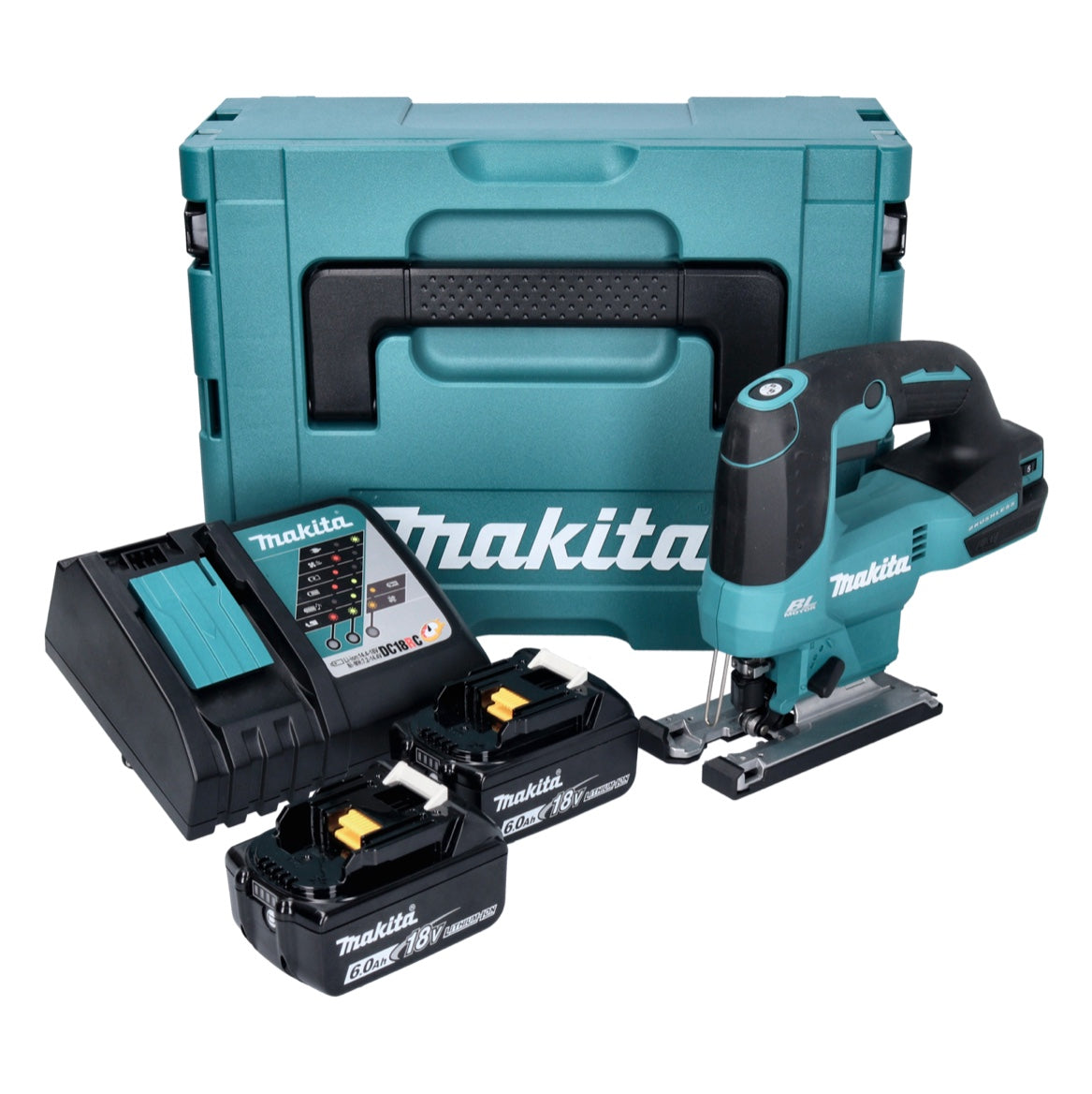 Makita DJV 184 RGJ Akku Pendelhub Stichsäge 18 V Brushless + 2x Akku 6,0 Ah + Ladegerät + Makpac