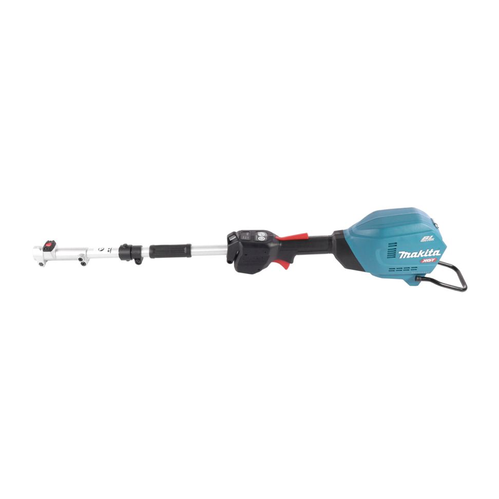 Der vielseitige 40 V max. Akku-Multifunktionsantrieb UX 01 G kommt mit einem leistungsfähigen bürstenlosen Motor und einer dreistufigen elektronischen Drehzahleinstellung. Mehrere erhältliche Zubehörteile machen Ihn zu einem Allrounder für den Garten- und Landschaftsbau. Dadurch ist die Kosteneffizienz unschlagbar, man benötigt lediglich den passenden Aufsatz für die vorgesehene Arbeit und keine Vielzahl an Geräten. Ob als Heckenschere, Kettensäge, Rasentrimmer, Sense, Bodenschneider oder Kehrbesen, es scheint so als ob er alles kann. Alle Einsatzwerkzeuge sind komplett werkzeuglos wechselbar. Ein 40 V max. Akku ( nicht im Lieferumfang ) versorgt das Gerät mit extrem viel Power. Makita hat den UX 01 G Multifunktionsantrieb mit der neusten Technologie ausgestattet, so ist er mit Xtreme Protection Technology ( XTP ) optimal gegen Staub und Spritzwasser geschützt. Der leistungsstarke Motor verfügt über die Active Feedback sensing Technology ( AFT ), welche das Gerät sofort beim Blockieren des Werkzeugs stoppt. Die stufenlose Drehzahlsteuerung dank des Elektronik-Schalters und der zusätzlichen dreistufigen elektronischen Drehzahleinstellung ist für sämtliche Anwendungen ausgelegt. Die Drehrichtungsumkehr ermöglicht mit dem Sensen- bzw. Rasentrimmeraufsatz eine einfache Entfernung von Grasschnitt. Der höhenverstellbare Rundgriff am Gerät ist auf jede Körpergröße, Aufsätze und die gegebenen Arbeitsbedingungen individuell einstellbar. Durch den im Lieferumfang enthaltenen Schultergurt ist ein kraftsparendes Arbeiten möglich.