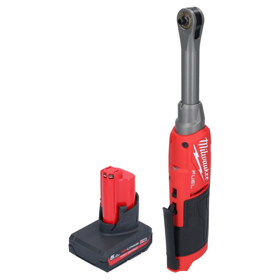 Die Milwaukee M12 FHIR14LR Akku Hochgeschwindigkeits Ratsche ist das ideale Werkzeug für Heimwerker und Profi Anwender, die eine schnellere Anwendungsgeschwindigkeit und gesteigerte Produktivität benötigen. Mit einem maximalen Drehmoment von 47 Nm und einer Geschwindigkeit von 450 U/min ermöglicht dieses Werkzeug eine effiziente und präzise Arbeit. Das 19-mm-Kopfdesign mit niedrigem Profil und die zusätzliche Länge von 82 mm bieten Anwendern einen besseren Zugang auch in engen Räumen. Egal, wie schwer erreichbar die Stellen sind, mit dieser Ratsche haben Sie maximalen Komfort und Flexibilität. Die Milwaukee M12 FHIR14LR ist mit der branchenführenden FUEL™-Technologie ausgestattet, die in Kombination mit einem verstärkten Mechanismus und einem Getriebegehäuse aus Feingussstahl eine längere Lebensdauer bietet. Sie können sich darauf verlassen, dass dieses Werkzeug auch den härtesten Anforderungen standhält. Mit dem Schalter mit variabler Geschwindigkeit haben Sie die volle Kontrolle über das Werkzeug. Die Premium-Gummiummantelung der Milwaukee M12 FHIR14LR macht das Werkzeug besonders widerstandsfähig gegen korrosive Materialien und bietet gleichzeitig erhöhten Komfort bei der Anwendung. Sie können sich auf ein langlebiges und komfortables Arbeitsgerät verlassen. Das LED-Licht beleuchtet den Arbeitsbereich, so dass Sie selbst in dunklen Umgebungen präzise arbeiten können. Die integrierte Ladestandsanzeige zeigt Ihnen die verbleibende Laufzeit an, so dass Sie immer wissen, wie viel Energie noch zur Verfügung steht. Die FUEL™ - Plattform, auf der die Milwaukee M12 FHIR14LR basiert, wurde speziell für anspruchsvolle Anwender entwickelt. Durch die Kombination des bürstenlosen POWERSTATE™ Motors, des REDLITHIUM™ Akkus und der REDLINK PLUS™ Elektronik bietet diese Technologie höchste Leistung und Langlebigkeit. Die Milwaukee M12 FHIR14LR ist zu 100 % kompatibel mit dem MILWAUKEE®-M12™-Produktprogramm.