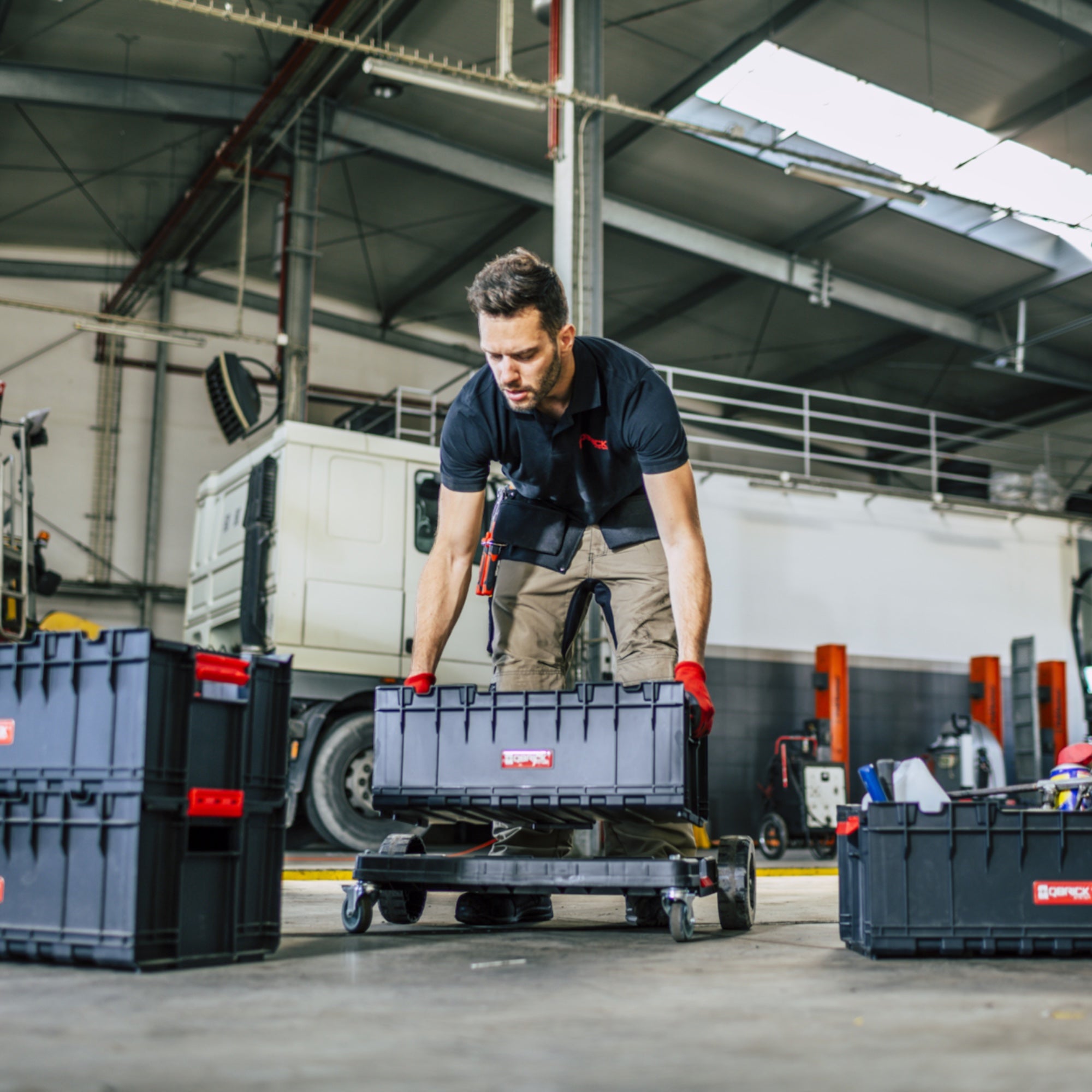 Ein funktionaler Container ist ein untrennbarer Bestandteil von Qbrick Kommoden-Sets. Die große Kapazität und das offene Design ermöglichen den Transport von Gegenständen mit nicht standardmäßigen Abmessungen oder solchen, die direkten Zugriff erfordern, ohne dass die Abdeckung geöffnet werden muss. Das Verbindersystem ermöglicht die Erstellung von Multi-Element-Sets mit jeder Qbrick System One-Box. Das Qbrick System ONE Box 2.0 Plus hat zwei verstellbare Trennwände, um den optimalen Platz für Sie zu schaffen. Die Version 2.0 der Produktlinie Qbrick System ONE ist eine neue Generation von Werkzeugkästen und Organizern mit einem verstärkten Design. Durch die zusätzliche Anpassung der Gehäuse an M8-Gewindeeinsätze kann das System an die Bedürfnisse des Anwenders angepasst werden.