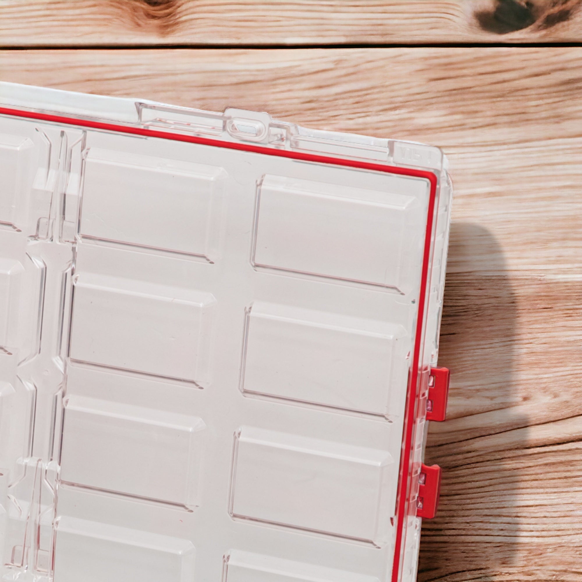 Qbrick System ONE Organizer XL Long Bin ist eine neue Version des XL-Organizers aus der Familie der modularen ONE-Organizer, die untereinander, aber auch mit allen Boxen der ONE-Linie kombiniert werden können. Sein Inhalt wird durch einen stabilen Schieber geschützt, der mit zusätzlichen Anschlüssen für die kleineren Organizer-Modelle (M, M Plus und L) ausgestattet ist. Der XL Long Bin Organizer ist mit 4 länglichen Eimern ausgestattet. Jeder von ihnen hat 3 herausnehmbare Fächer, die eine beliebige Organisation des Innenraums ermöglichen. Er ist der einzige Organizer auf dem Markt, mit dem Sie Elemente bis zu einer Länge von 50 cm transportieren und aufbewahren können. Die Version 2.0 der ONE-Produktlinie ist eine neue Generation von Werkzeugkästen und Organizern mit einem verstärkten Design. Durch die zusätzliche Anpassung der Gehäuse an M8-Gewindeeinsätze kann das System an die Bedürfnisse des Anwenders angepasst werden.