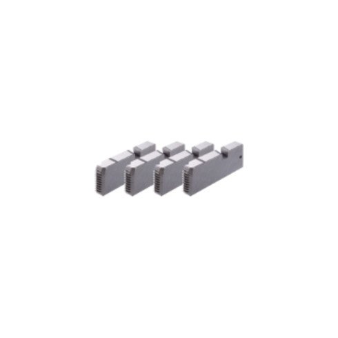 Schneidbacken bestehen aus hochwertigem, vergütetem Werkzeugstahl für extrem lange Standzeiten · große Phase an den Schneidbacken ermöglicht den leichten Anschnitt auf das Gewindestahlrohr · alle Schneidbacken sind nummeriert und mit einer Paßnut versehen, für schnelle Montage in den Gewindeschneidköpfen · nur im Satz erhältlich: 4 oder 5 Stück im Pack · der Stahlrohr verarbeitende Monteur kann mit den hochwertigen und vergüteten Schneidbacken präzises Rohrgewinde auf Gewindestahlrohr nach EN10255 M-H schneiden · nur in Verbindung mit Schneidköpfen und Gewindeschneidmaschine möglich · Einsatzbereich: zum Erzeugen von kegligen Rohrgewinden nach BSPT R, ISO 7-1, EN 10226 auf Stahlrohren nach der Norm EN 10255 M-H. Gewindeschneidbereich ist von R 1" bis R 2"