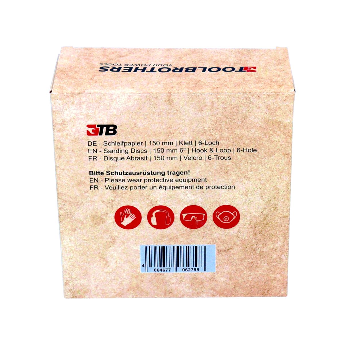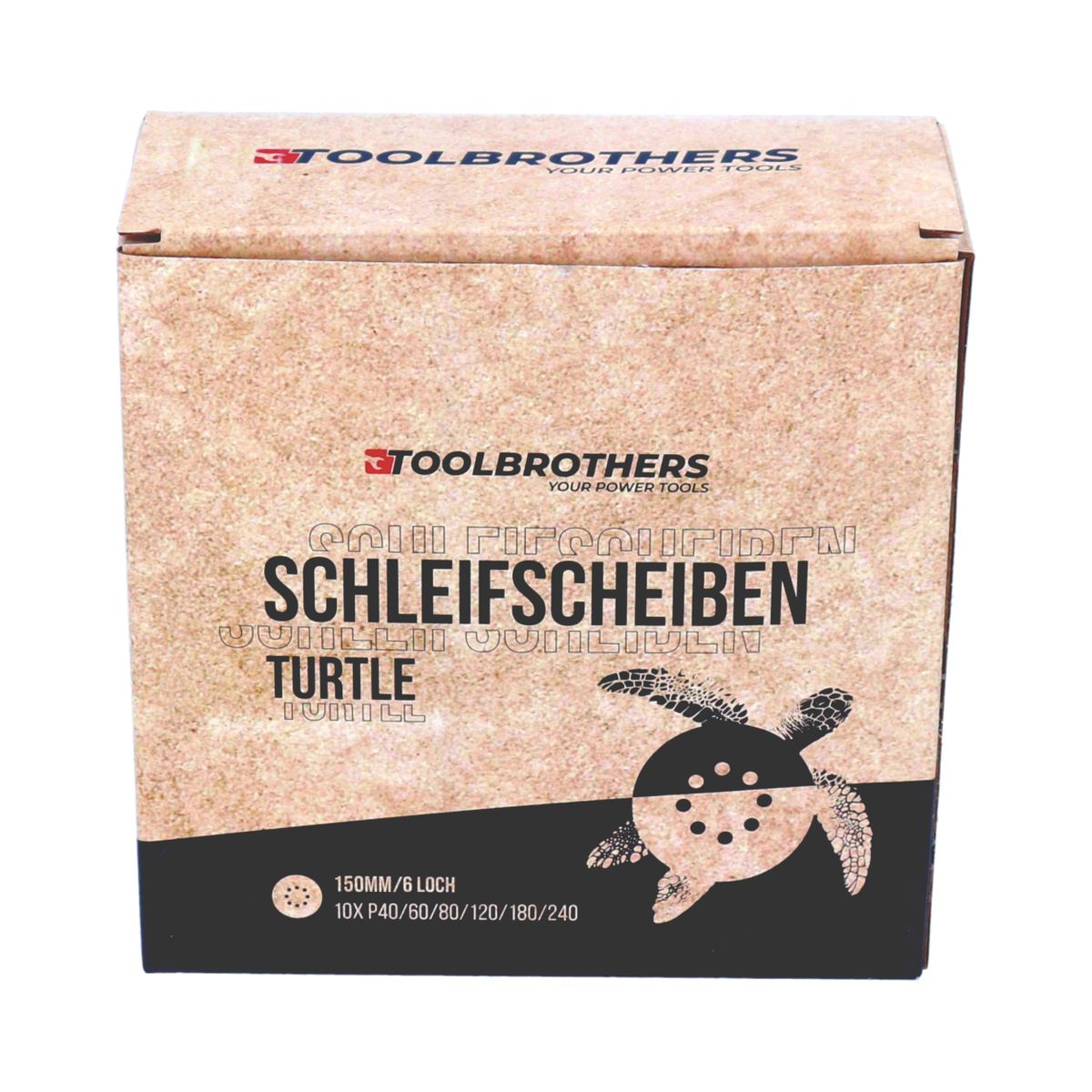 Toolbrothers TURTLE Schleifset 2 Packungen 120x Schleifscheiben 150 mm Klett 6 Loch je 20x P40 / P60 / P80 / P120 / P180 / 240 für Hartholz, Weichholz, Lack, Stein, Stahl, Aluminium, Furnier