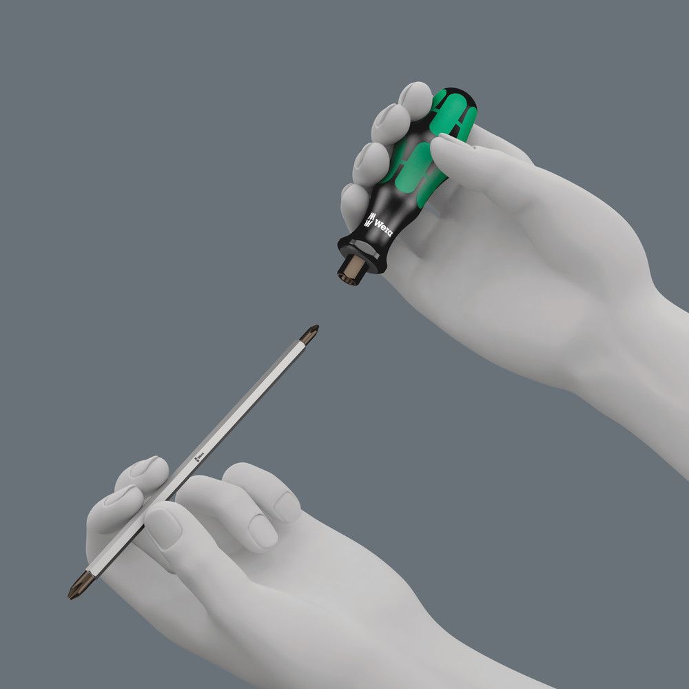Inhalt: 1 Handgriff (98 mm) je 1 Kombiklinge für Schlitzschrauben 4,0 x 0,6 - 6,0 x 1,0 / 5,0 x 0,8 - 7,0 x 1,2 1 Kombiklinge für Schrauben mit Kreuzschlitz (PH) Gr. 1 / 2 1 Kombiklinge für Schrauben mit Kreuzschlitz (PZD) Gr. 1 / 2 je 1 Kombiklinge für Innen-TORX®-Schrauben T 10 - 15 / 20 - 25 / 30 - 40 je 1 Kombiklinge (Hex-Plus Technologie) für Schrauben mit Innensechskant-Profil (1 Seite Sechskant/1 Seite Sechskant mit Kugelkopf) 4 - 4 / 5 - 5 / 6 - 6 mm (alle Kombiklingen 175 mm lang) Lieferung in Falt-/Gürteltasche