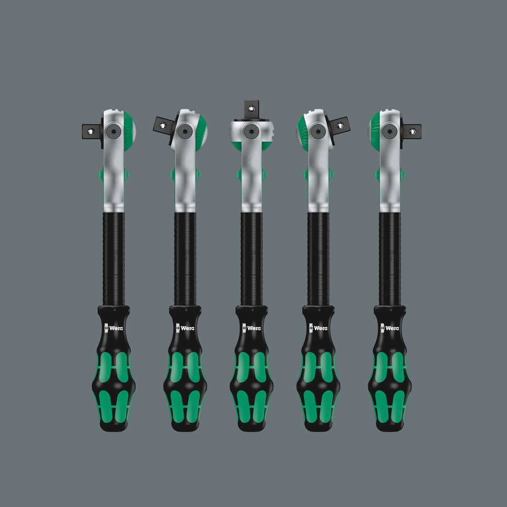 12,5 mm (1/2 ″)-Vierkantantrieb · Steckschlüssel-Einsätze und Bedienelemente aus legiertem Werkzeugstahl · matt verchromt · Knarre mit Rechts-Links-Umschaltung in jeder Position · Auswurf des Aufsteckwerkzeugs durch Knopfdruck oder Schiebeschalter in jeder Position Besondere Produktvorteile der Knarre: - Schwungmassenkonstruktion - griffige Schnelldrehhülse - schwenkbarer Knarrenkopf (definierte Stellungen bei 0°, 15° und 90° nach links und rechts) · Inhalt: 1 feinverzahnte Schwenk- und Umschaltknarre (72 Zähne) je 1 6-kant-Steckschlüssel-Einsatz SW 10 / 11 / 12 / 13 / 14 / 15 / 16 / 17 / 18 / 19 / 20 / 21 / 22 / 24 / 27 / 30 / 32 mm je 1 Verlängerung mit Schnelldrehhülse und Flexible-Lock-System 125 mm, 250 mm 1 Wobble-Verlängerung mit Ausschwenkwinkel von 15° 1 Quergriff mit Gleitstück 1 Kardangelenk 1 Adapter mit Schnellwechselfutter (12,5 mm (1/2 ″)-Außenvierkant auf 7,94 mm (5/16 ʺ)-Außensechskant zum maschinellen Antrieb (konventioneller Akkuschrauber) von Steckschlüssel-Einsätzen je 1 Bit für Schrauben mit Innensechskant-Profil Gr. 5 / 6 / 8 / 10 mm* je 1 Bit für Schrauben mit Kreuzschlitz (PH) Gr. 3** je 1 Bit für Schrauben mit Kreuzschlitz (PZD) Gr. 3** je 1 Bit für Schrauben mit Innen-TORX®-Profil Gr. T 20 / 25 / 30 / 40 / 45 / 50 / 55*** * Bitlänge jeweils ca. 30 mm lang ** Bitlänge jeweils ca. 32 mm lang *** Bitlänge jeweils ca. 35 mm lang